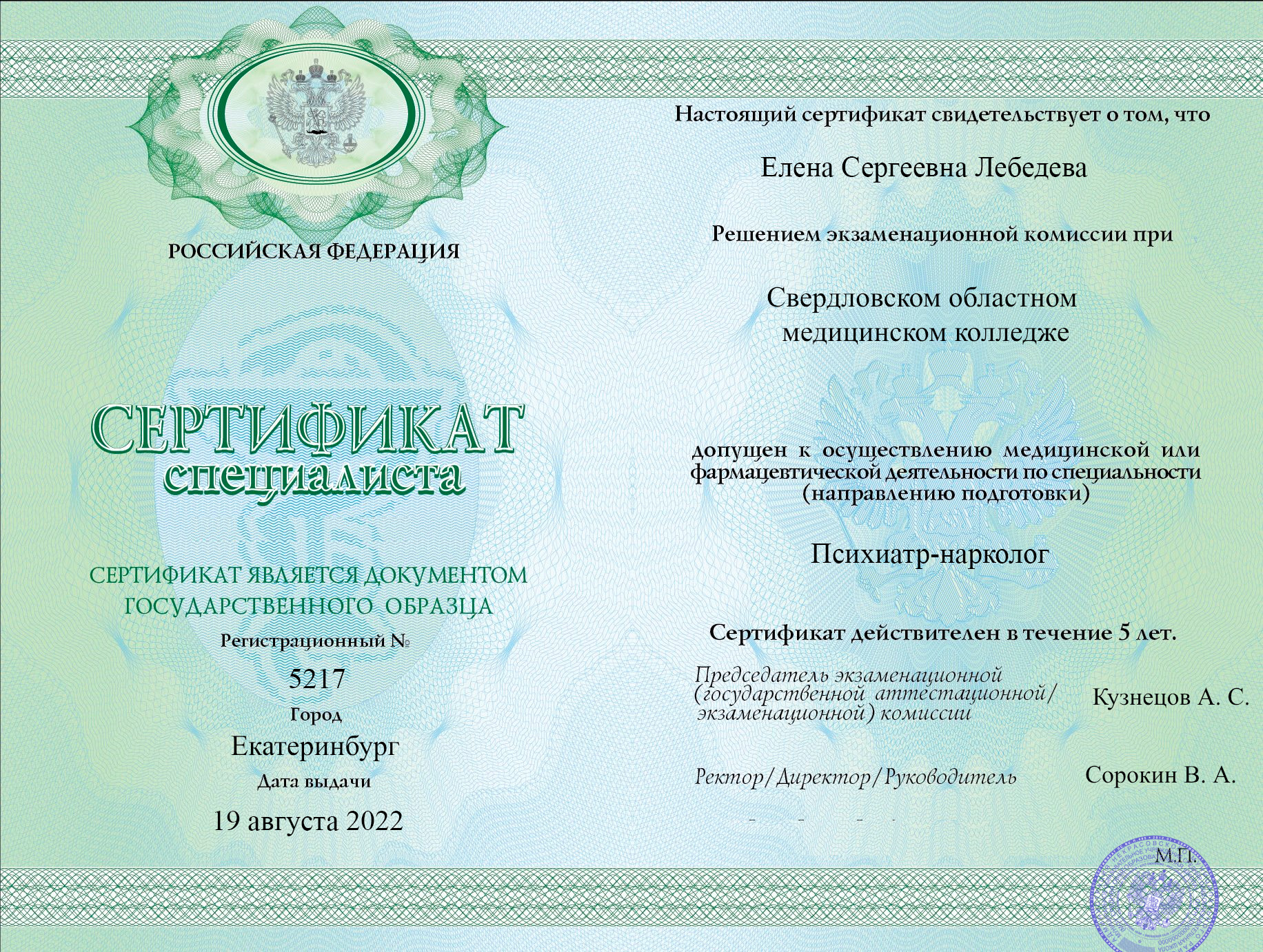 Елена Сергеевна Лебедева врач нарколог клиники доктора Стукаловой в Заречном